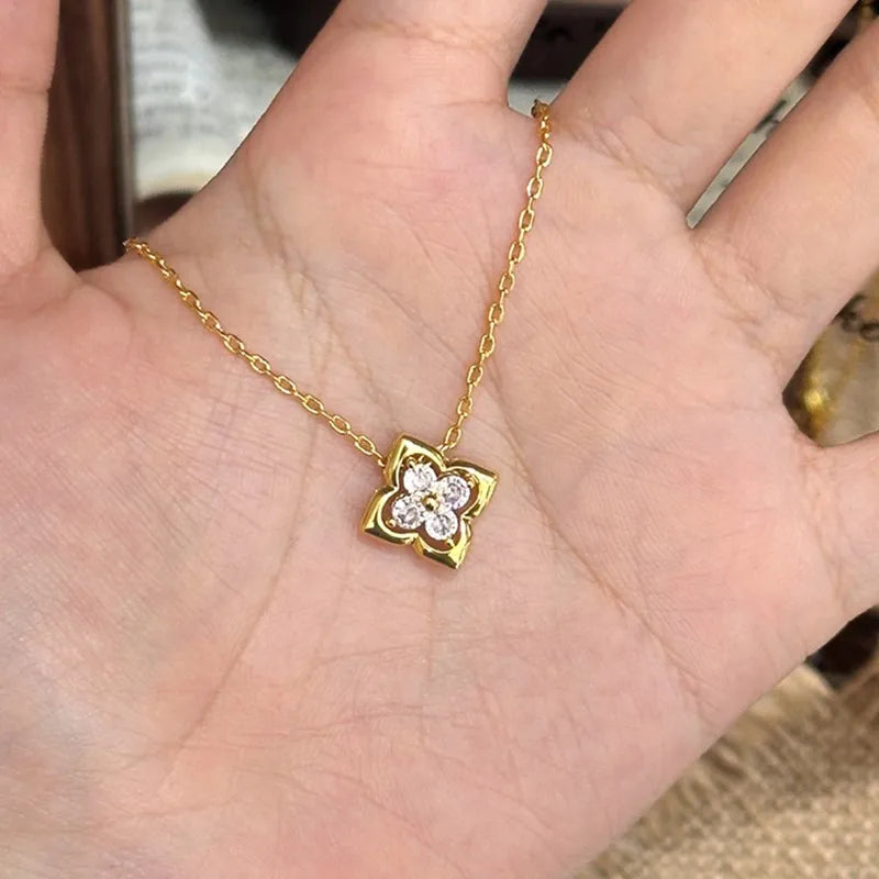Clover Moissanite Necklace 18K Gold Plated Silver